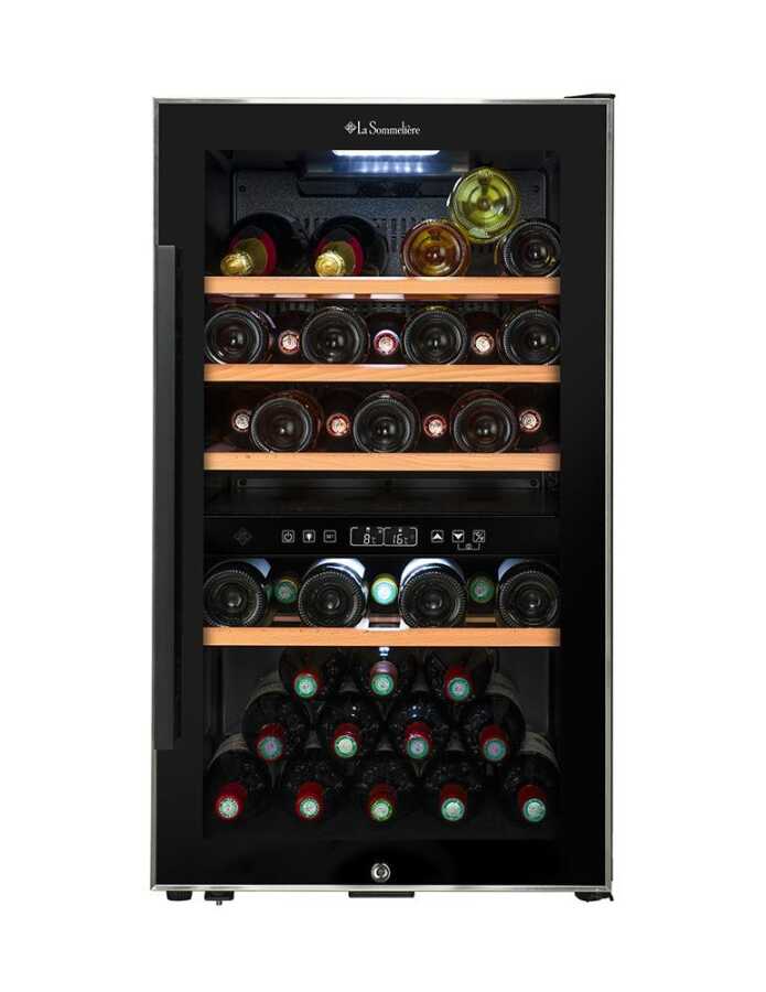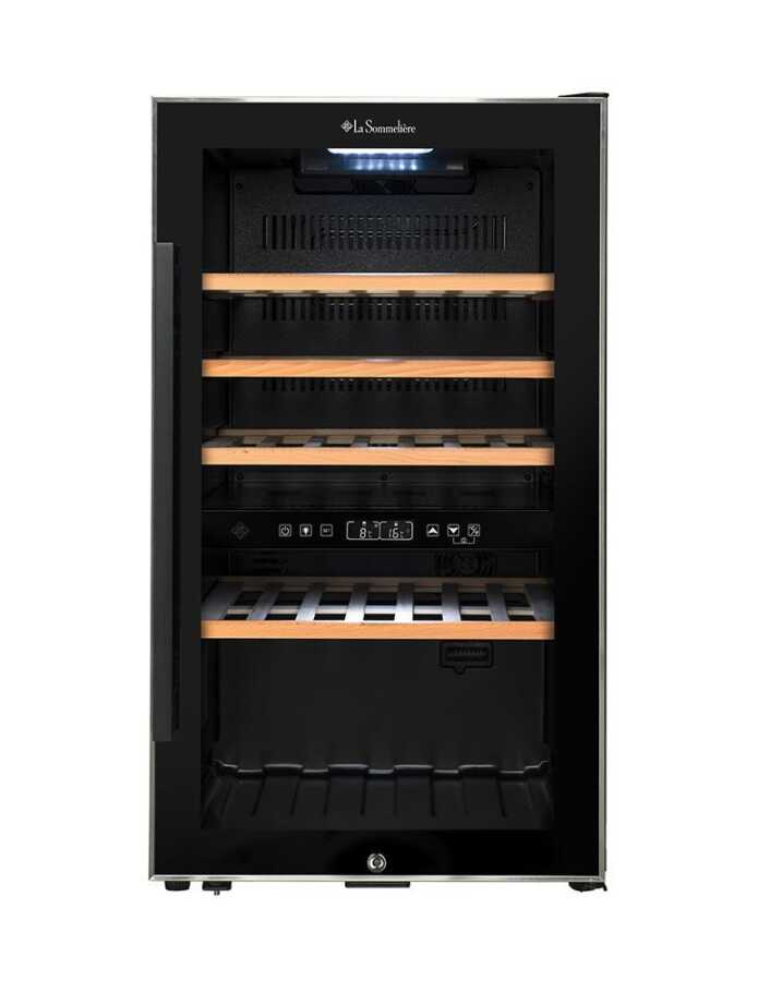 49 şişe kapasitesine sahip ECS51.2Z, 5°C ile 20°C arasında ayrı ayrı ayarlanabilen iki sıcaklık bölgesiyle donatılmıştır .